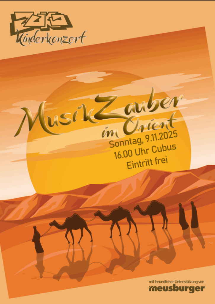 Beim diesjährigen interaktiven Kinderkonzert könnt ihr die Magie des Orients erleben. Helft unserem Straßenmusiker bei der Suche nach einem geheimnisvollen Instrument, das sein Leben für immer verändern könnte.